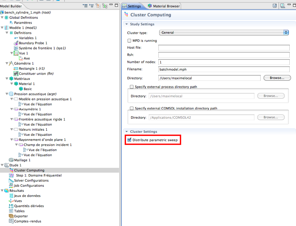 Then go into the “Cluster Computing node” to edit its parameters, and check the “Distribute parametric sweep” :